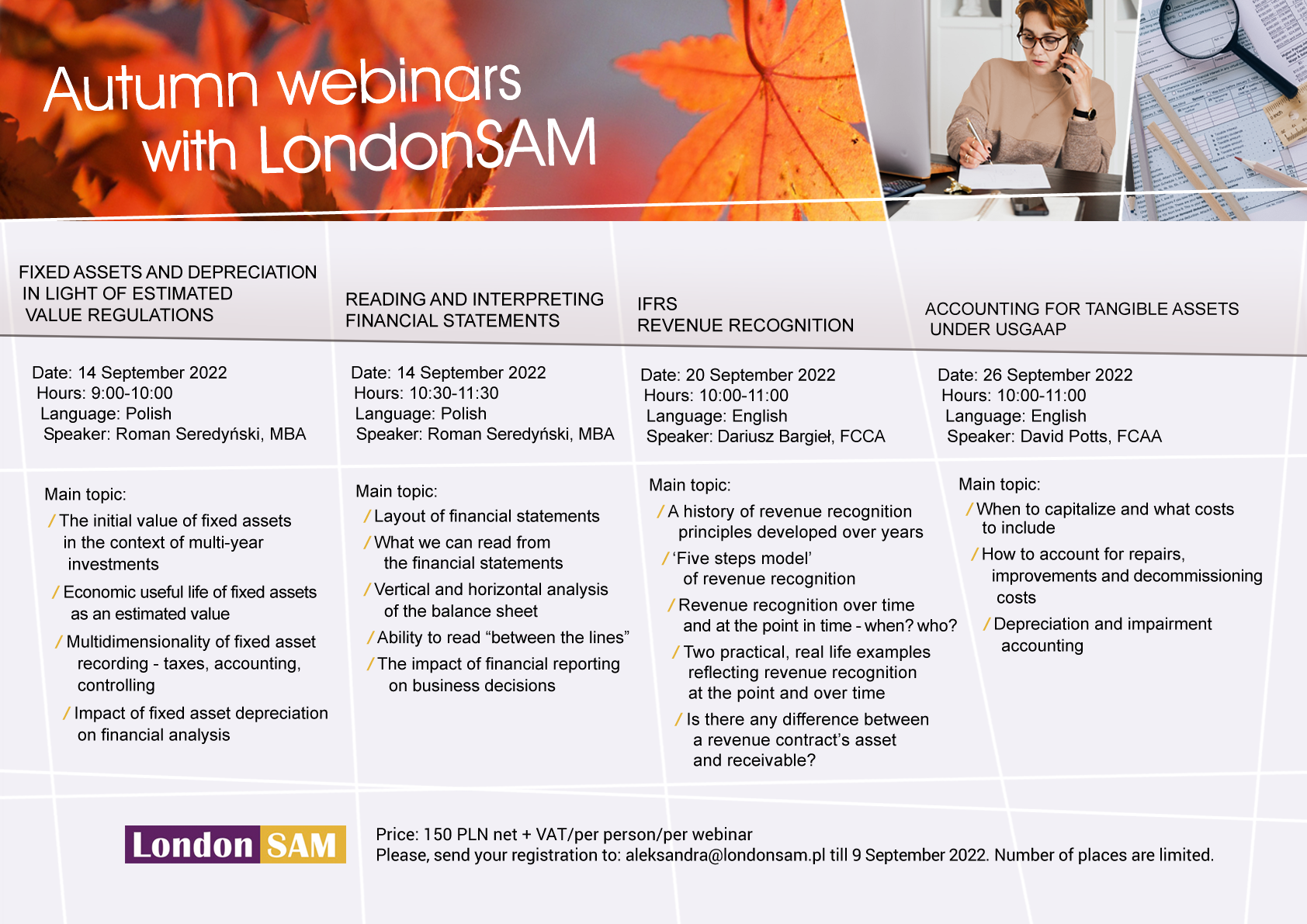 Zapisy pod adresem: aleksandra@londonsam.pl. Cena zgłoszenia: 150 PLN netto+VAT/webinar.